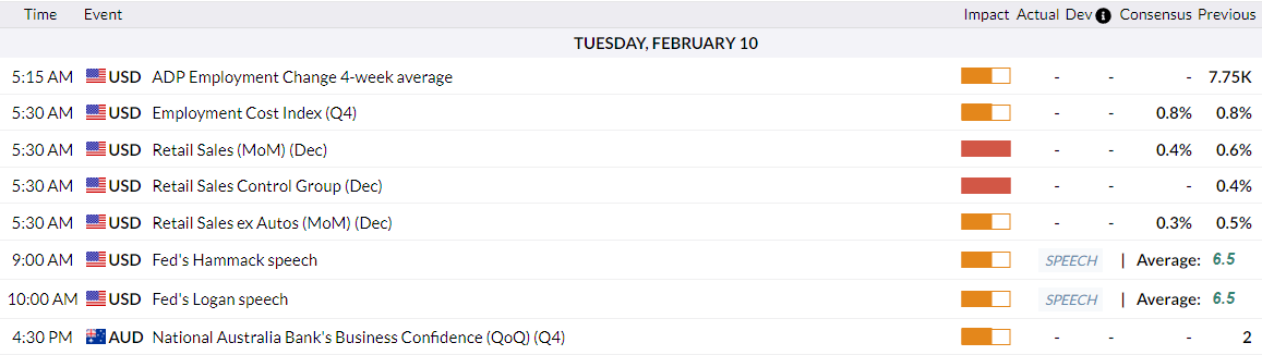 Melihat ke depan, hari Selasa akan membawa Indeks Sentimen Konsumen Westpac untuk bulan Februari pada pukul 16:30 GMT dan survei Kepercayaan Bisnis NAB untuk bulan Januari; keduanya akan memberikan informasi lebih lanjut tentang latar belakang domestik setelah pergeseran hawkish RBA, dengan pasar memprakirakan probabilitas 80% untuk kenaikan suku bunga lainnya pada bulan Mei. Di sisi AS, kalender hari Selasa relatif ringan menjelang rilis Indeks Harga Konsumen (IHK) berdampak tinggi pada hari Rabu dan Nonfarm Payrolls (NFP) yang tertunda untuk bulan Januari, meskipun beberapa pidato gubernur Fed dijadwalkan sepanjang minggu dan dapat menyuntikkan volatilitas jika mereka menolak ekspektasi pemotongan suku bunga.