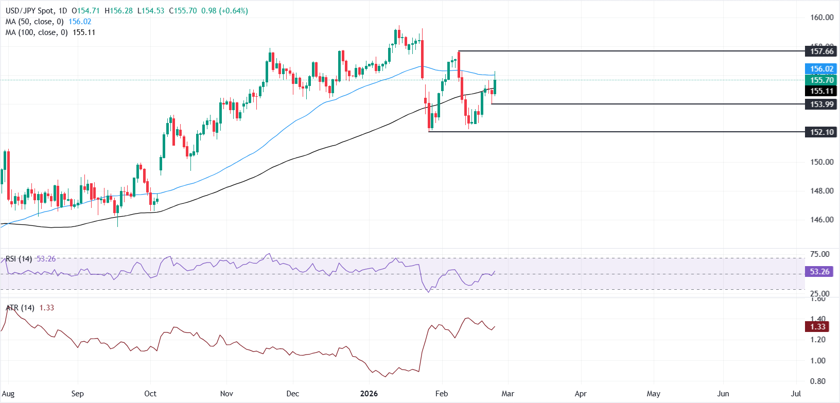 Pada saat berita ini ditulis, USD/JPY diperdagangkan sekitar 155,70 setelah mencapai level tertinggi harian di 156,26, naik hampir 0,64%.